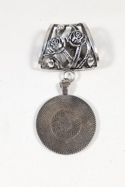 Dimnsions hauteur totale 8cm largeur 3,5cm. Médaillon diamètre 3,5cm.